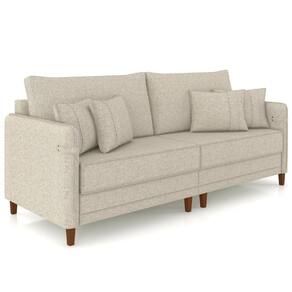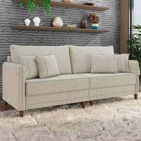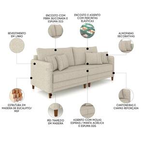 Sofá 3 Lugares Living 212cm Pé Madeira Zoe Linho Cru Z08 - Mpozenato