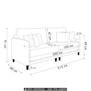 Com assento e encosto fixos, o Sofá Para Sala ainda conta com almofadas decorativas com fibra siliconada, pés em madeira e estrutura bipartida que facilita o .