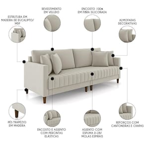 Conheça o Sofá 3 Lugares Living 216cm Linn k04 Veludo Bege da Mpozenato é a escolha ideal para quem busca um móvel que combina estilo e funcionalidade.