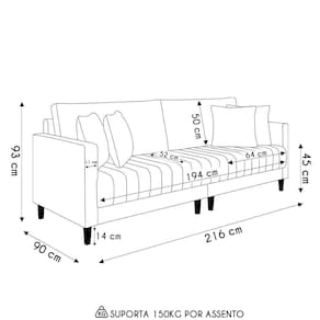 Com seu design moderno e pés elegantes em madeira, ele se adapta com facilidade a qualquer espaço, seja uma Sala de Estar, um quarto de casal sofisticado, ou até mesmo uma área de recepção convidativa. Esse Sofá Living tem o assento em espuma D-28 com molas ensacadas e manta acrílica, o encosto com persintas elásticas que oferece o conforto e estrutura em madeira de eucalipto tratada que garante a durabilidade essencial para o dia a dia. Além de almofadas decorativas 100% siliconadas oferecendo qualidade e conforto ao ambiente. Imagine-se desfrutando de momentos relaxantes no Sofá 3 Lugares.