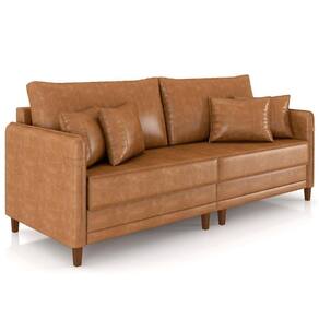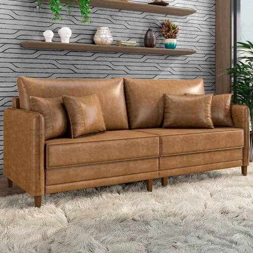 Sofá 3 Lugares Living 232cm Pé Madeira Zoe Sintético Camel Z08 - Mpozenato