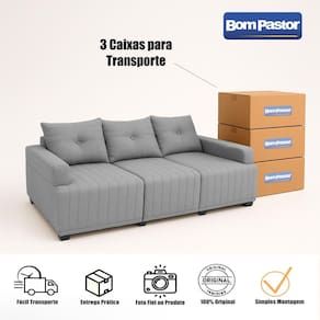 Possui design moderno e acompanha almofadas decorativas que completam o visual sofisticado do ambiente. Chega direto da fábrica, embalado em 3 caixas, facilitando o transporte e tornando a montagem simples e rápida. Ideal para quem busca qualidade com praticidade.