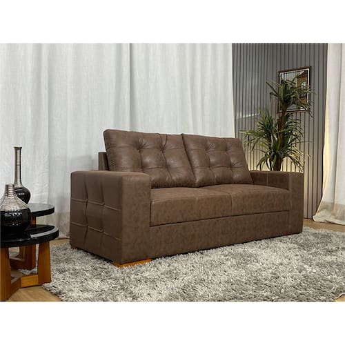 Sofá 3 Lugares Living Corino Marrom Miami Nosso Sofá Living 3 lugares Marrom modelo Miami é um produto moderno, com design elegante que combina com qualquer ambiente e deixa sua sala ainda mais linda e aconchegante. MEDIDAS DO SOFÁ: Comprimento: 2.10 mProfundidade: 74 cmAltura: 93,5 cmEspuma do Assento: 18 cm Assento: O assento contem espuma 33, Percinta elasticas e manta siliconada o que proporcionam uma acomodação extremamente confortável. Encosto: O encosto é de almofadas soltas feitas com fibra de silicone, trazendo mais conforto para você na hora do descanso. Estrutura: Sua estrutura é com madeira de eucalipto, 100% reflorestada e seca em estufa, e os pés são produzidos em Madeira. Revestimento: O revestimento é em tecido Corino, deixando a superfície do sofá muito mais macia.