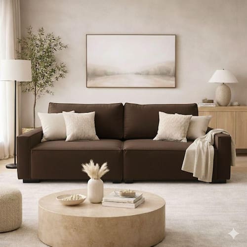 Este sofá contemporâneo de 3 lugares, composto por 2 módulos, é a escolha ideal para quem busca um móvel funcional, elegante e confortável para a sala de estar. Seu design moderno, com linhas retas e visual equilibrado, proporciona harmonia ao ambiente e facilita a composição com diferentes estilos de decoração.