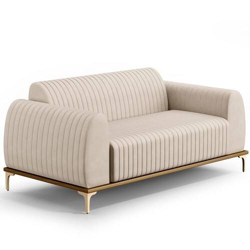 Com bastante personalidade e beleza ímpar o Sofá 3 Lugares Para Sala de Estar Molino 180 cm D02 Pés D'Ouro Veludo Bege C-309 - Lyam Decor vem para requintar ainda mais sua decoração. Amplamente sofisticado, é ideal se você está buscando por uma peça elegante e confortável. Possui acabamentos impecáveis, é estruturado em madeira de eucalipto tratado, unidas com grampos galvanizados, base envernizada e pés de alumínio com metalização na cor DOuro que o tornam ainda mais atraente e convidativo.