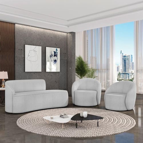 Sofá 3 Lugares Orgânico 180cm Morgan E 2 Poltronas Lua Bouclê Cinza