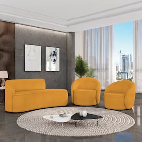 O Kit Sofá 3 Lugares Orgânico 180cm Morgan e 2 Poltronas Lua é um verdadeiro convite ao relaxamento! Ele possui um design orgânico que remete às formas encontradas na natureza que além de se moldar ao corpo humano, evoca uma sensação de calma e equilíbrio criando um espaço acolhedor e relaxante. O revestimento desse maravilhoso conjunto conta com um tecido extremamente elegante no Bouclê Mostarda, suportando em média até 240 kg de peso, podendo ser utilizado por pessoas de diferentes biotipos. A Poltrona Lua contém uma simetria artística e curvas suaves, ela contém uma Base Giratória com giro em 360 graus e uma estrutura em madeira de reflorestamento eucalipto, que garante a resistência e a sustentabilidade do produto. Ela tem um acabamento reforçado e espuma de qualidade D23, que oferece maciez e conforto. Ela contém detalhes de costura no encosto e um assento cilíndrico arredondado resultando em um acabamento perfeito conferindo muito mais valor e personalizado ao produto, oferecendo maior liberdade de movimento ao cliente. O Sofá Morgan por sua vez é uma combinação perfeita de conforto e estilo. Com uma estrutura robusta de madeira de eucalipto e MDF, este sofá garante durabilidade e resistência. Os assentos e encostos são fixos, o encosto é preenchido com espuma D-20, proporcionando suporte ideal para suas costas, enquanto o assento com espuma D-23 oferece uma experiência de assento firme e aconchegante. Seu formato curvo e sem braços traz um toque de modernidade, permitindo que o sofá se encaixe harmoniosamente em diversos estilos de decoração, desde o minimalista até o mais ousado. As sapatas plásticas são pequenas proteções colocadas na base dos pés do sofá para evitar que eles risquem ou danifiquem o chão. Além de proteger o piso, essas sapatas ajudam a distribuir o peso do sofá de maneira mais uniforme. Esse lindo conjunto pode ser utilizado em salas de estar, recepções, escritórios, lojas, espaços comerciais, ou qualquer outro espaço que você queira decorar com estilo e bom gosto. O kit Sofá Morgan e 2 Poltronas Lua é um produto que vai fazer a diferença na sua decoração e no seu bem-estar. Ele vai trazer charme, conforto e durabilidade para o seu ambiente. Corra e garanta o seu agora mesmo!