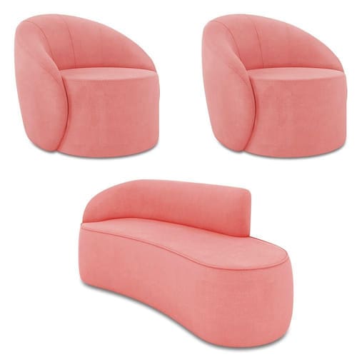 O Kit Sofá 3 Lugares Orgânico 180cm Morgan e 2 Poltronas Lua é um verdadeiro convite ao relaxamento! Ele possui um design orgânico que remete às formas encontradas na natureza que além de se moldar ao corpo humano, evoca uma sensação de calma e equilíbrio criando um espaço acolhedor e relaxante. O revestimento desse maravilhoso conjunto conta com um tecido extremamente elegante no Suede Rosê, suportando em média até 240 kg de peso, podendo ser utilizado por pessoas de diferentes biotipos. A Poltrona Lua contém uma simetria artística e curvas suaves, ela contém uma Base Giratória com giro em 360 graus e uma estrutura em madeira de reflorestamento eucalipto, que garante a resistência e a sustentabilidade do produto. Ela tem um acabamento reforçado e espuma de qualidade D23, que oferece maciez e conforto. Ela contém detalhes de costura no encosto e um assento cilíndrico arredondado resultando em um acabamento perfeito conferindo muito mais valor e personalizado ao produto, oferecendo maior liberdade de movimento ao cliente. O Sofá Morgan por sua vez é uma combinação perfeita de conforto e estilo. Com uma estrutura robusta de madeira de eucalipto e MDF, este sofá garante durabilidade e resistência. Os assentos e encostos são fixos, o encosto é preenchido com espuma D-20, proporcionando suporte ideal para suas costas, enquanto o assento com espuma D-23 oferece uma experiência de assento firme e aconchegante. Seu formato curvo e sem braços traz um toque de modernidade, permitindo que o sofá se encaixe harmoniosamente em diversos estilos de decoração, desde o minimalista até o mais ousado. As sapatas plásticas são pequenas proteções colocadas na base dos pés do sofá para evitar que eles risquem ou danifiquem o chão. Além de proteger o piso, essas sapatas ajudam a distribuir o peso do sofá de maneira mais uniforme. Esse lindo conjunto pode ser utilizado em salas de estar, recepções, escritórios, lojas, espaços comerciais, ou qualquer outro espaço que você queira decorar com estilo e bom gosto. O kit Sofá Morgan e 2 Poltronas Lua é um produto que vai fazer a diferença na sua decoração e no seu bem-estar. Ele vai trazer charme, conforto e durabilidade para o seu ambiente. Corra e garanta o seu agora mesmo! OBSERVAÇÃO IMPORTANTE: A entrega é realizada no endereço informado, não realizamos o transporte para andares superiores, como subir escadas, elevadores ou guinchos. Não realizamos montagens, desmontagens ou instalações. Todos esses serviços são de responsabilidade do comprador. Dimensões da Poltrona: Altura Total: 85 cm Largura Total: 91 cm Profundidade Total: 93 cm Altura do Encosto: 42 cm Largura do Assento: 62 cm Profundidade do Assento: 63 cm Altura do Assento: 40 cm Altura do chão ao Assento: 45 cm Largura do encosto: 87 cm Altura dos Pés: 5 cm Peso: 30 kg Dimensões do Sofá: Altura Total: 80 cm Largura Total: 180 cm Profundidade Total: 70 cm Altura do Encosto: 40 cm Largura total livre do Assento: 180 cm Profundidade do Assento: 55 cm Altura dos Pés: 2 cm Altura do chão ao Assento: 45 cm Peso: 25 kg Especificações do Produto: Estrutura: Madeira Eucalipto Reflorestada e MDF Revestimento: Suede Material do Estofamento da Poltrona: D-23, Manta Acrílica e Percintas Elásticas Material do Estofamento do Sofá: Assento D-23; Encosto D-20 e Percintas Elásticas Quantidade de Lugares do Sofá : 3 Lugares Sofá Possui Braça: Não Peso Suportado: Até 240 kg Tipo de Pés: Poltrona com Base Giratória e Sapata Plástica PVC Material da Base da Poltrona: Aço Carbono Tipo de Encosto: Fixo Diferenciais: Design orgânico.Tecido de alta qualidade. Necessita de Montagem: Não Garantia: 90 dias contra defeito de fabricação Instruções de Limpeza: Utilizar um pano limpo e levemente úmido Você irá Receber: 02 Poltronas Giratória e 01 Sofá Orgânico - Entregue em: 02 Volumes
