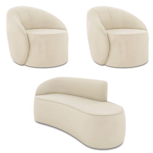 Sofá 3 Lugares Orgânico 180cm Morgan e 2 PoltronasLua Veludo D03 - D`Rossi - Bege