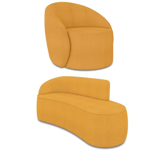 O Kit Sofá 3 Lugares Orgânico 180cm Morgan e Poltrona Lua é um verdadeiro convite ao relaxamento! Ele possui um design orgânico que remete às formas encontradas na natureza que além de se moldar ao corpo humano, evoca uma sensação de calma e equilíbrio criando um espaço acolhedor e relaxante. O revestimento desse maravilhoso conjunto conta com um tecido extremamente elegante no Bouclê Mostarda, suportando em média até 240 kg de peso, podendo ser utilizado por pessoas de diferentes biotipos. A Poltrona Lua contém uma simetria artística e curvas suaves, ela contém uma Base Giratória com giro em 360 graus e uma estrutura em madeira de reflorestamento eucalipto, que garante a resistência e a sustentabilidade do produto. Ela tem um acabamento reforçado e espuma de qualidade D23, que oferece maciez e conforto. Ela contém detalhes de costura no encosto e um assento cilíndrico arredondado resultando em um acabamento perfeito conferindo muito mais valor e personalizado ao produto, oferecendo maior liberdade de movimento ao cliente. O Sofá Morgan por sua vez é uma combinação perfeita de conforto e estilo. Com uma estrutura robusta de madeira de eucalipto e MDF, este sofá garante durabilidade e resistência. Os assentos e encostos são fixos, o encosto é preenchido com espuma D-20, proporcionando suporte ideal para suas costas, enquanto o assento com espuma D-23 oferece uma experiência de assento firme e aconchegante. Seu formato curvo e sem braços traz um toque de modernidade, permitindo que o sofá se encaixe harmoniosamente em diversos estilos de decoração, desde o minimalista até o mais ousado. As sapatas plásticas são pequenas proteções colocadas na base dos pés do sofá para evitar que eles risquem ou danifiquem o chão. Além de proteger o piso, essas sapatas ajudam a distribuir o peso do sofá de maneira mais uniforme. Esse lindo conjunto pode ser utilizado em salas de estar, recepções, escritórios, lojas, espaços comerciais, ou qualquer outro espaço que você queira decorar com estilo e bom gosto. O kit Sofá Morgan e Poltrona Lua é um produto que vai fazer a diferença na sua decoração e no seu bem-estar. Ele vai trazer charme, conforto e durabilidade para o seu ambiente. Corra e garanta o seu agora mesmo!