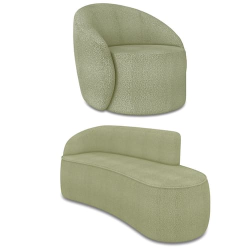 O Kit Sofá 3 Lugares Orgânico 180cm Morgan e Poltrona Lua é um verdadeiro convite ao relaxamento! Ele possui um design orgânico que remete às formas encontradas na natureza que além de se moldar ao corpo humano, evoca uma sensação de calma e equilíbrio criando um espaço acolhedor e relaxante. O revestimento desse maravilhoso conjunto conta com um tecido extremamente elegante no Bouclê Pistache, suportando em média até 240 kg de peso, podendo ser utilizado por pessoas de diferentes biotipos. A Poltrona Lua contém uma simetria artística e curvas suaves, ela contém uma Base Giratória com giro em 360 graus e uma estrutura em madeira de reflorestamento eucalipto, que garante a resistência e a sustentabilidade do produto. Ela tem um acabamento reforçado e espuma de qualidade D23, que oferece maciez e conforto. Ela contém detalhes de costura no encosto e um assento cilíndrico arredondado resultando em um acabamento perfeito conferindo muito mais valor e personalizado ao produto, oferecendo maior liberdade de movimento ao cliente. O Sofá Morgan por sua vez é uma combinação perfeita de conforto e estilo. Com uma estrutura robusta de madeira de eucalipto e MDF, este sofá garante durabilidade e resistência. Os assentos e encostos são fixos, o encosto é preenchido com espuma D-20, proporcionando suporte ideal para suas costas, enquanto o assento com espuma D-23 oferece uma experiência de assento firme e aconchegante. Seu formato curvo e sem braços traz um toque de modernidade, permitindo que o sofá se encaixe harmoniosamente em diversos estilos de decoração, desde o minimalista até o mais ousado. As sapatas plásticas são pequenas proteções colocadas na base dos pés do sofá para evitar que eles risquem ou danifiquem o chão. Além de proteger o piso, essas sapatas ajudam a distribuir o peso do sofá de maneira mais uniforme. Esse lindo conjunto pode ser utilizado em salas de estar, recepções, escritórios, lojas, espaços comerciais, ou qualquer outro espaço que você queira decorar com estilo e bom gosto. O kit Sofá Morgan e Poltrona Lua é um produto que vai fazer a diferença na sua decoração e no seu bem-estar. Ele vai trazer charme, conforto e durabilidade para o seu ambiente. Corra e garanta o seu agora mesmo!