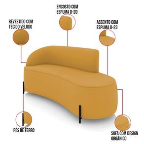 Sofá 3 Lugares Orgânico 180cm Pé Ferro Preto Morgan Veludo Mostarda D03 - D`Rossi