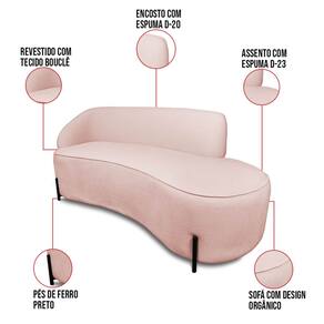 O Sofá 3 Lugares Orgânico Morgan de 180 cm, é a combinação perfeita de conforto e estilo. Com uma estrutura robusta de madeira de eucalipto e MDF, este sofá garante durabilidade e resistência. Os assentos e encostos são fixos, o encosto é preenchido com espuma D-20, proporcionando suporte ideal para suas costas, enquanto o assento com espuma D-23 oferece uma experiência de assento firme e aconchegante. O design orgânico remete às formas encontradas na natureza como ondas, folhas ou conchas que além de se moldarem ao corpo humano, evocam uma sensação de calma e equilíbrio. Seu formato curvo e sem braços traz um toque de modernidade, permitindo que o sofá se encaixe harmoniosamente em diversos estilos de decoração, desde o minimalista até o mais ousado. A fluidez das linhas cria um ambiente acolhedor e convidativo, perfeito para qualquer ocasião. Os pés de ferro, além de fornecerem estabilidade, trazem um toque industrial que contrasta lindamente com o elegante revestimento em Bouclê na sofisticada cor Rosê. Seja para receber amigos, relaxar após um dia longo ou simplesmente adicionar um toque de elegância ao seu lar, o Sofá Orgânico é a escolha ideal. Não perca a oportunidade de elevar a decoração da sua casa com esta peça única. Adquira já o seu e descubra o que é conforto e estilo em um só lugar!