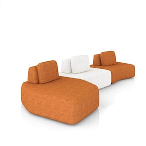 Sofá 3 Lugares Orgânico Com Chaise E 2 Módulos Berlim Bouclê Caramelo/off White K01 - D`rossi - Branco