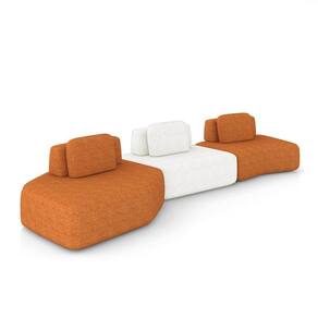 Sofá 3 Lugares Orgânico Com Chaise E 2 Módulos Berlim Bouclê Caramelo/off White K01 - D'rossi
