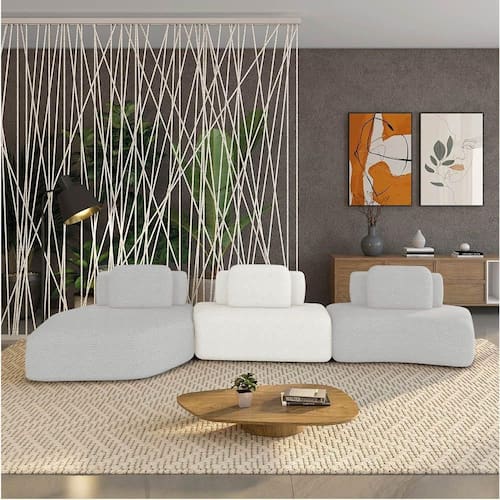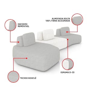 Estrutura: Madeira de Eucalipto; Reforços com cantoneiras e chapas em MDF. Pés: Madeira. Revestimento: Bouclê. Enchimento: Fibra siliconada e espuma D-33.Vendido e entregue por WebContinental