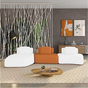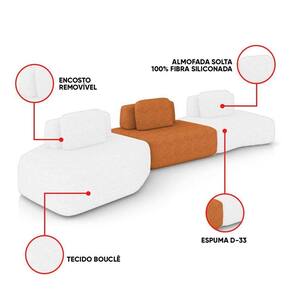 Estrutura em madeira de eucalipto com reforços em MDF. Revestimento em Bouclê. Pés em madeira.Vendido e entregue por WebContinental