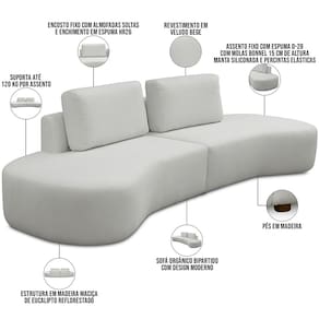 Projetado para levar fluidez a qualquer ambiente, o Sofá 3 Lugares Orgânico Sala de Estar Living 250cm Louise D06 Veludo Bege, da Lyam Decor, vai chamar a atenção de todos com seu contorno curvo e formas arredondadas. Mais que um sofá para sala, esse sofá curvo promete levar sofisticação e leveza, agregando charme na decoração, desde a sala de estar, living, recepções e afins, já que decora sem pesar, pois cria a sensação de movimento e harmonia, de modo a proporcionar relaxar confortável e único. Além disso, assento e encosto são preenchidos com materiais de alta densidade, proporcionando um bem-estar excepcional. Então, se você busca por um móvel elegante, confortável e de alta qualidade o Sofá Orgânico Louise é a escolha certa para transformar o seu ambiente. Garanta já o seu!