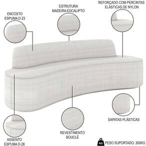 O impressionante Sofá 3 Lugares para Sala de Estar Living 180cm Koane D06 Bouclê Off White, da Mpozenato, é o estofado perfeito para elevar seu espaço de convivência! Projetado com um toque moderno, esse sofá curvo apresenta estilo e funcionalidade, o que o torna indispensável para qualquer casa contemporânea.