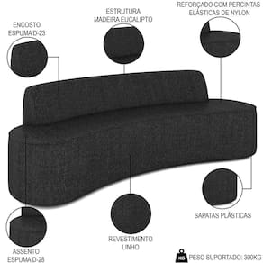 O impressionante Sofá 3 Lugares para Sala de Estar Living 180cm Koane D06 Linho Preto, da Mpozenato, é o estofado perfeito para elevar seu espaço de convivência! Projetado com um toque moderno, esse sofá curvo apresenta estilo e funcionalidade, o que o torna indispensável para qualquer casa contemporânea.