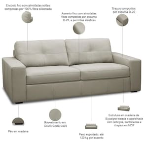 ColorFamily: Cinza | Fabricante: Lyam Decor | MaterialFamily: Eucalipto, Espuma | Color: Cinza Claro | Estilo: Moderno | ColorSupplier: Cinza Claro | Largura: 205 cm | Cor: Cinza claro | Altura: 88 cm | OriginCountry: | OriginState: PR | ProductContents: 01 Sofá | Profundidade: 92 cm | SupplierSimpleName: Sofá 3 Lugares Para Sala de Estar Living 205cm Vienne L06 Couro Cinza Claro - Lyam Decor | ProductLength: 92 cm | Material: Madeira de Eucalipto, Espuma D-26