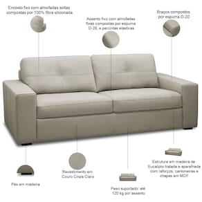 Revestimento em tecido Couro de alta qualidade na tonalidade Cinza Claro.