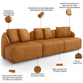 Revestimento em tecido Couríssimo de alta qualidade na tonalidade Whisky.