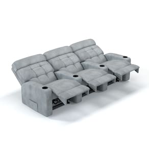 Sofá 3 Lugares Reclinável Elétrico Tecido Bouclé Linha Cinema - Cinza
