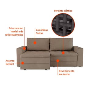 O Sofá Berna possui estrutura em madeira eucalipto 25 mm, enchimento do encosto e plumante siliconado e flocos de espuma, enchimento do assento em espuma D23, percintas elásticas, pés de plástico e revestimento em suedeVendido e entregue por MOBLY COMERCIO VAREJISTA LTDA.