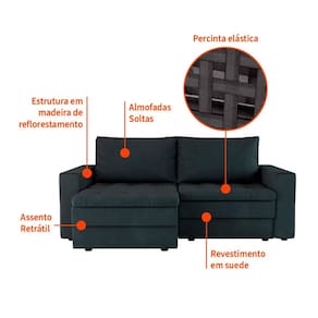 O Sofá Berna possui estrutura em madeira eucalipto 25 mm, enchimento do encosto e plumante siliconado e flocos de espuma, enchimento do assento em espuma D23, percintas elásticas, pés de plástico e revestimento em suedeVendido e entregue por MOBLY COMERCIO VAREJISTA LTDA.