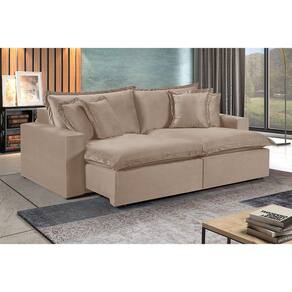 Sofá 3 Lugares Retrátil Com Encosto Fixo M-145 Veludo Martins - Bege