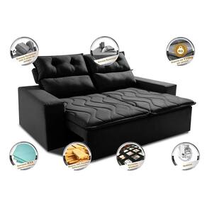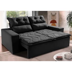Sofá 3 Lugares Retrátil e Reclinável 1,80m Cama inBox Smal. com bordado pantográfico Suede - Preto