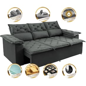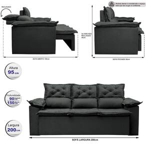 Informações do Produto: *Assentos: Feitos com espuma D33, Fibra Siliconada, Percintas Elásticas e Madeira de Eucalipto, sua estrutura foi desenvolvida para dar mais qualidade e praticidade ao seu dia a dia. *Encosto: Possuindo 5 níveis de estágios, seus encostos são reclináveis. Suas almofadas do encosto são removíveis, podendo retira-las da base. Além disso são compostas de 80% fibra siliconada, 20% flocos de espuma que proporcionam maior conforto. *Braços: Com design lindo e almofadado, seus braços medem 20cm de largura cada um e são feitos com espuma D33. *Estrutura: É utilizada a Madeira de Eucalipto 100% de reflorestamento, sendo um produto ecologicamente correto e sustentável. Para fixar as partes, são utilizados grampos galvanizados, permitindo uma melhor fixação da estrutura. *Tecido: Com um toque macio e gostoso, o tecido utilizado é o Suede Velusoft.