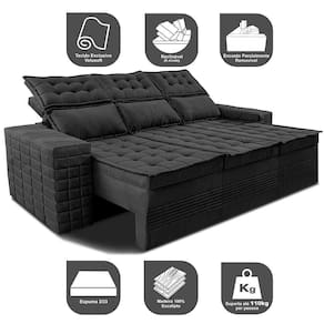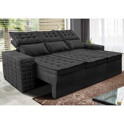 Sofá 3 Lugares Retrátil E Reclinável Cama Inbox Senses 2,00m Velusoft Preto