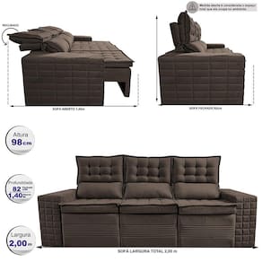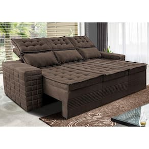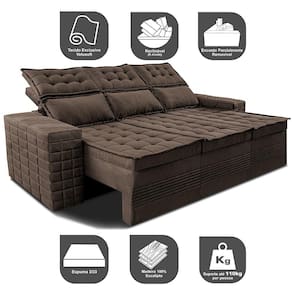 Sofá 3 Lugares Retrátil e Reclinável Cama inBox Senses. 2,00m Velusoft - Marrom