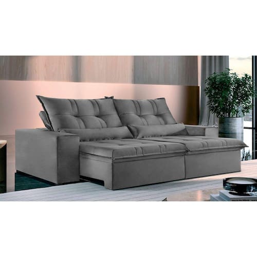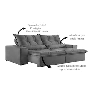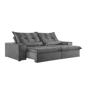 Sofá 3 Lugares Retrátil e Reclinável Galícia Veludo com Molas Cinza Cinza