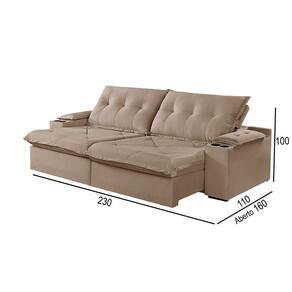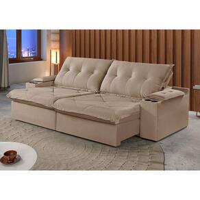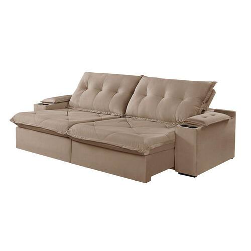 Sofá 3 Lugares Retrátil e Reclinável Martins M-163 Com Acessórios Veludo - Bege