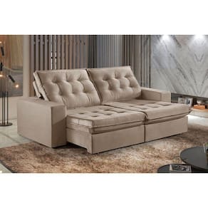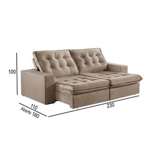 Sofá 3 Lugares Retrátil E Reclinável Martins M-165 Veludo Bege