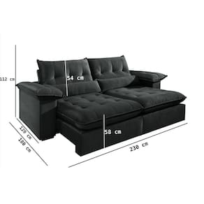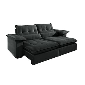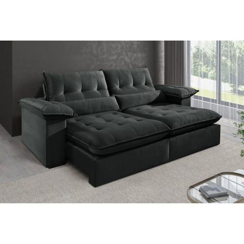 Sofá 3 Lugares Retrátil e Reclinável Mônaco Veludo com Molas Ensacadas Preto