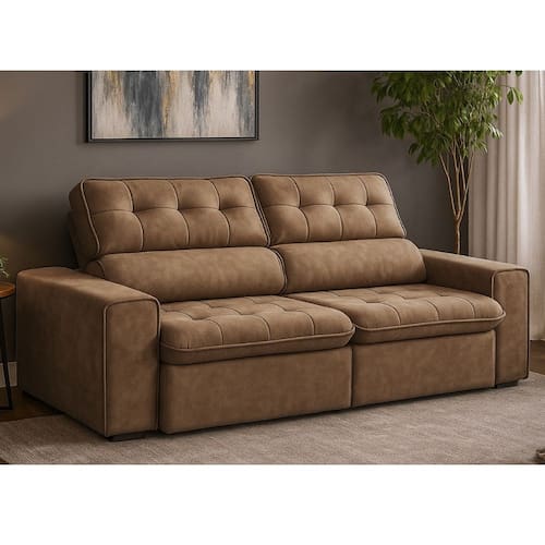 Sofa 3 Lugares Retratil Reclinavel 230cm Nobuck Austin Ferguile O Sofa Austin combina conforto, elegancia e praticidade em um unico movel. Com design sofisticado, ele transforma sua sala em um ambiente acolhedor e moderno. Ideal para relaxar, assistir filmes ou receber visitas, oferece assentos amplos, macios e resistentes, garantindo bem-estar em todos os momentos. Fabricado com materiais de alta qualidade, conta com molas espirais e ensacadas, alem de espuma D-26, proporcionando durabilidade e conforto superior. O estofado em tecido nobuck traz sofisticacao e um toque suave, tornando o sofa ainda mais elegante.