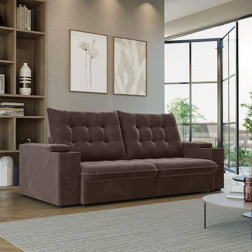 Madeira de eucalipto, veludo, espuma D23, fibra siliconadaVendido e entregue por Multiloja
