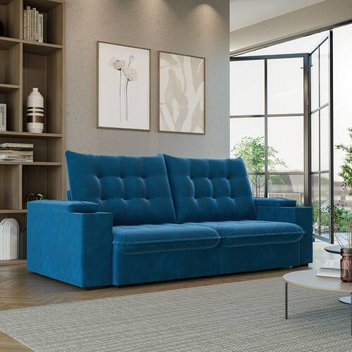 Sofá 3 Lugares Retrátil Reclinável 230cm Sued El Dorado Flash Experimente o conforto supremo do Sofá 3 Lugares Retrátil Reclinável 230cm Suede El dorado Flash. Feito com uma estrutura robusta de madeira de eucalipto, este sofá combina durabilidade com elegância. Seu tecido de veludo proporciona um toque suave e luxuoso, enquanto a percinta elástica oferece suporte adicional para uma experiência de assento mais confortável. Cada assento possui espuma D23 revestida com manta acrílica, garantindo conforto e suporte ideais. O encosto é preenchido com flocos mesclado e fibra siliconada, proporcionando um apoio ergonômico que se molda ao corpo. Este sofá é projetado para suportar até 120kg por assento, combinando funcionalidade com estilo sofisticado para qualquer ambiente.