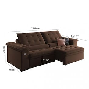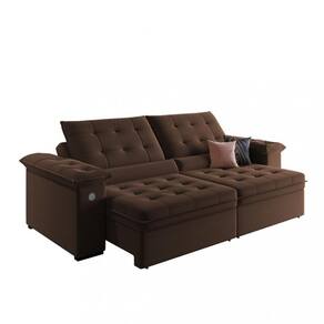 Sofá 3 Lugares Retrátil Reclinável com USB Veludo 200cm Khalifa Wood Estofados - Marrom