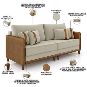 Revestimento em Veludo Bege e Couríssimo Camel, ambos de alta qualidade.
