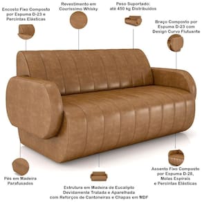 Profundidade: 80 cm | Largura: 188 cm | Formato do sofá: Curvo | Estilo: Orgânico | Fabricante: Lyam Decor | Orientação do Sofá: Frontal | Peso máximo suportado: 450 kg | Densidade da espuma do assento: D-28 | Material do estofamento: Couríssimo | Altura: 84 cm | Tipo de produto: Sofá Living | Mecanismo de abertura do produto: na | Material de enchimento do encosto: Espuma | Linha: Sala de Estar, Living | Peso: 28 kg | Desenho do tecido: Liso | Cor dos pés: Marrom | Quantidade de Caixas de embalagem: 1 | Unidades por kit: 1 | Requer montagem: Não | Cor: Whisky