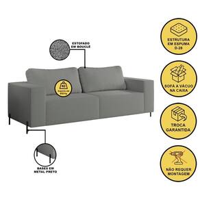 Revestido em tecido bouclê, o sofá traz um toque sofisticado e macio, combinando com ambientes modernos e aconchegantes. Seu encosto é preenchido com fibra siliconada, oferecendo suavidade e apoio confortável, enquanto o assento conta com espuma de densidade D-28, garantindo firmeza e durabilidade.
