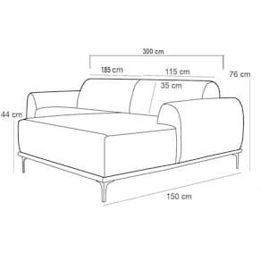 Sofá: 185 cm x 76 cm x 89 cm.
