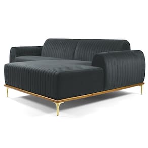 Sendo assim, o Sofá 300cm 5 Lugares Com Chaise Direito Pés Gold Molino da Domi é a escolha certeira para compor sua sala de estar! Feito em madeira de Eucalipto, encosto e assentos fixos em espuma de qualidade D-23 e D28, respectivamente, conta com design inovador e moderno para melhor aproveitamento. Além disso a sua composição não para por aí! Seu revestimento em veludo agrega um toque de modernidade ímpar ao cômodo.
