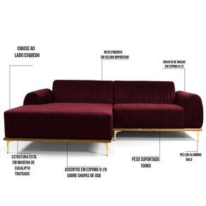 Sendo assim, o Sofá 350cm 6 Lugares Com Chaise Esquerdo Pés Gold Molino da Domi é a escolha certeira para compor sua sala de estar! Feito em madeira de Eucalipto, encosto e assentos fixos em espuma de qualidade D-23 e D28, respectivamente, conta com design inovador e moderno para melhor aproveitamento. Além disso a sua composição não para por aí! Seu revestimento em veludo agrega um toque de modernidade ímpar ao cômodo.
