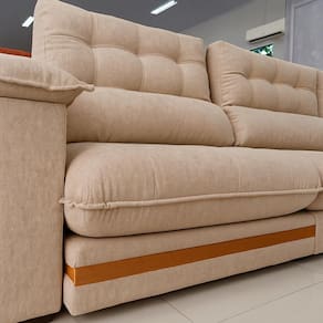 Com molas ensacadas e pillow top de 30 cm, o estofado oferece maciez e sustentação na medida certa. Quando aberto, alcança 1,80 m de profundidade, transformando-se praticamente em uma chaise para momentos de descanso e lazer. Seu design robusto com 1,10 m de altura e 1,20 m de profundidade quando fechado confere imponência e sofisticação ao ambiente.